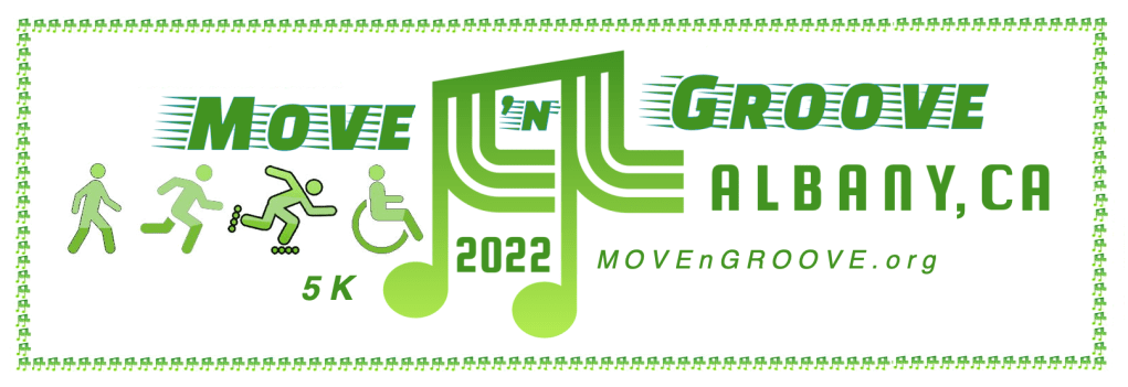 The Move’n’Groove is a 5K where you can walk, run, roller skate, wheelchair, or push a stroller around Albany High School and Memorial park while enjoying LIVE MUSIC from multiple bands positioned along the course đ¶. There will be chip timing on a fast, mostly-flat, and fairly accurate 5K course (6 loops on the streets around the park & AHS). The music continues post-race on the main stage in the park from 12:30â2pm. Funded by revenues from the City of Albany’s soda tax, this is the first year of this event which could become an annual happening. Learn more at MOVEnGROOVE.org.