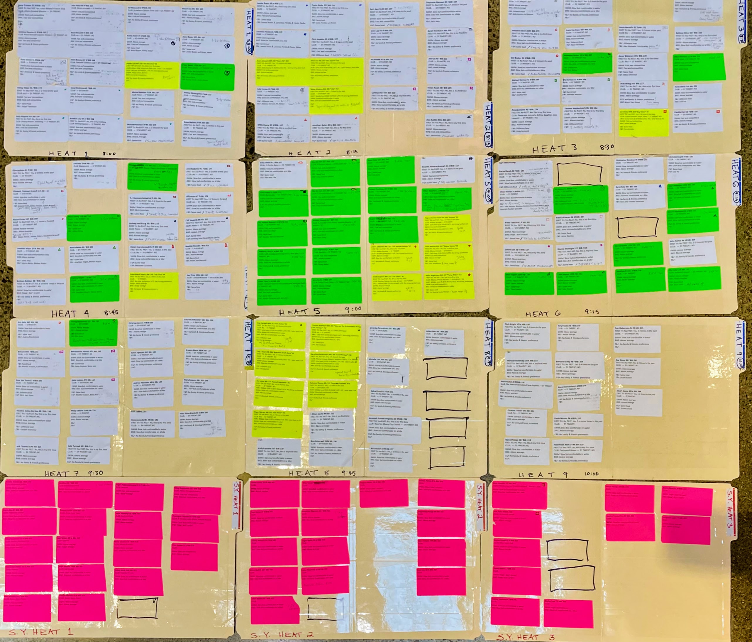 We did our best to accommodate all family & friends requests and early/middle/late heat preferences. There is very limited ability to make adjustments and only in the event of a pressing need, but if you notice a problem with your listing, let us know ASAP. Also let us know if you can’t make it on race day so we can open your heat assignment.